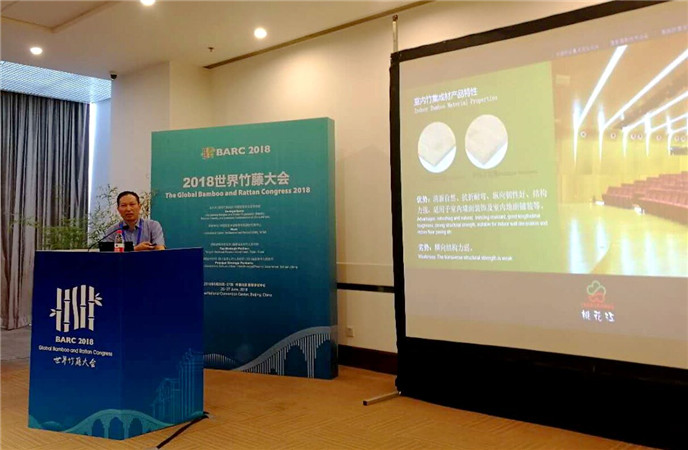 薛董以《竹建筑材料及其在城鎮(zhèn)化過程中的應(yīng)用潛力》為題,圍繞中國工業(yè)化以來企業(yè)運(yùn)用現(xiàn)代工藝技術(shù)及設(shè)備研發(fā)新的竹材產(chǎn)品,闡述在我國城鎮(zhèn)化建設(shè)過程中竹材新產(chǎn)品在室內(nèi)外的運(yùn)用以及未來的巨大潛力,結(jié)合豐富的案例展示了中國竹材產(chǎn)品的應(yīng)用成果及竹材應(yīng)用的發(fā)展趨勢(shì)。薛董的演講得到了來自世界各地的科研院所、高校、企業(yè)界的100多位代表的廣泛關(guān)注。